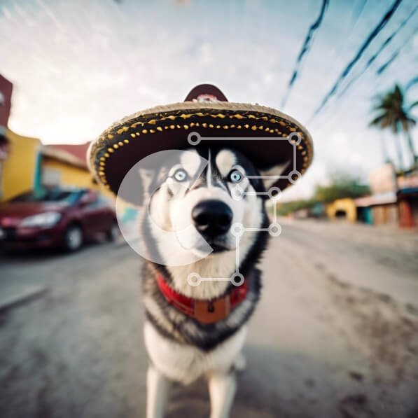 Intra Συλλεκτικό Ξύλινο Παζλ Plywood 4mm – Σκύλος γεροδεμένος που φορά μεξικάνικο καπέλο σομπρέρο στο δρόμο Σε Ξύλινο Κουτί – Διαστάσεις: 10×10 cm – 25 κομμάτια
