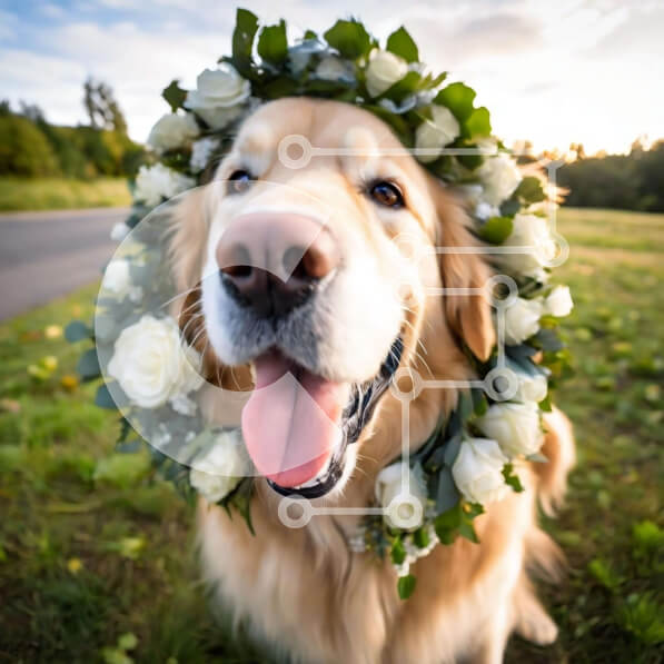 Intra Συλλεκτικό Ξύλινο Παζλ Plywood 4mm – Σκύλος Γκόλντεν Ριτρίβερ με λευκά λουλούδια Σε Ξύλινο Κουτί – Διαστάσεις: 10×10 cm – 25 κομμάτια
