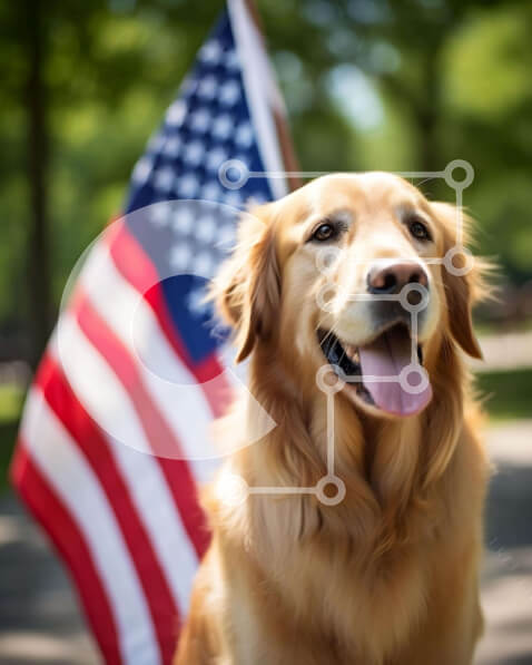 Intra Συλλεκτικό Ξύλινο Παζλ Plywood 4mm – Σκύλος Γκόλντεν Ριτρίβερ με αμερικανική σημαία Σε Ξύλινο Κουτί – Διαστάσεις: 10×10 cm – 25 κομμάτια