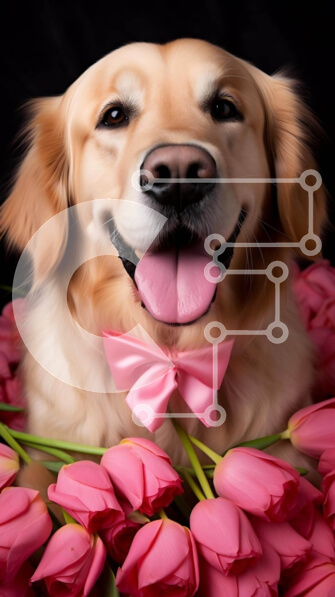 Intra Συλλεκτικό Ξύλινο Παζλ Plywood 4mm – Σκύλος Γκόλντεν Ριτρίβερ σε χωράφι με ροζ τουλίπες Σε Ξύλινο Κουτί – Διαστάσεις: 10×10 cm – 25 κομμάτια