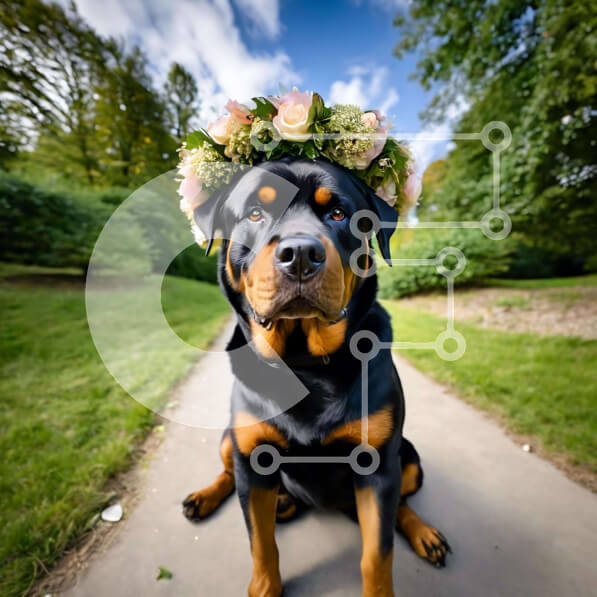 Intra Συλλεκτικό Ξύλινο Παζλ Plywood 4mm – Σκύλος με στέμμα λουλουδιών σε εξωτερικούς χώρους Σε Ξύλινο Κουτί – Διαστάσεις: 10×10 cm – 25 κομμάτια