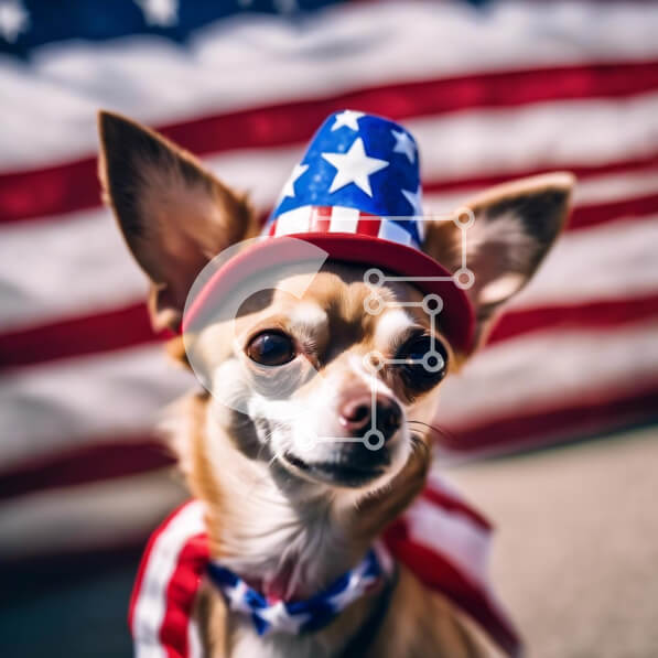 Intra Συλλεκτικό Ξύλινο Παζλ Plywood 4mm – Σκύλος Τσιουάουα που γιορτάζει την 4η Ιουλίου με καπέλο αμερικανικής σημαίας Σε Ξύλινο Κουτί – Διαστάσεις: 10×10 cm – 25 κομμάτια