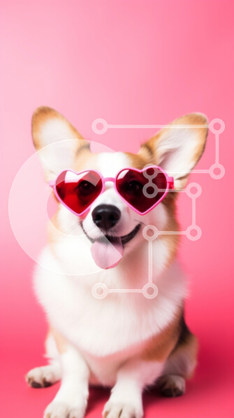 Intra Συλλεκτικό Ξύλινο Παζλ Plywood 4mm – Σκύλος Corgi με γυαλιά ηλίου σε σχήμα καρδιάς σε ροζ φόντο Σε Ξύλινο Κουτί – Διαστάσεις: 10×10 cm – 25 κομμάτια