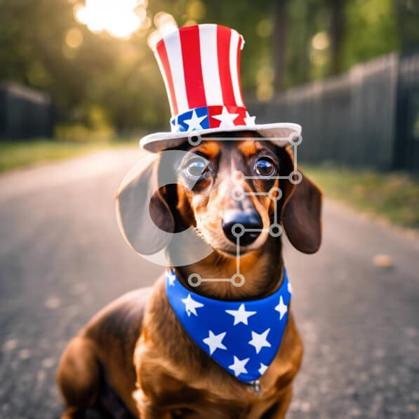 Intra Συλλεκτικό Ξύλινο Παζλ Plywood 4mm – Σκύλος Dachshund με καπέλο με θέμα την αμερικανική σημαία και μπαντάνα Σε Ξύλινο Κουτί – Διαστάσεις: 10×10 cm – 25 κομμάτια