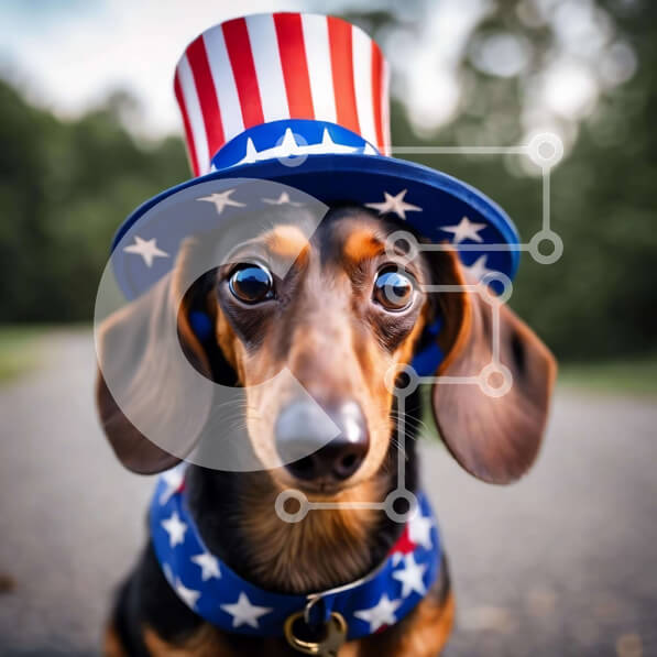 Intra Συλλεκτικό Ξύλινο Παζλ Plywood 4mm – Σκύλος Dachshund με καπέλο με θέμα την αμερικανική σημαία Σε Ξύλινο Κουτί – Διαστάσεις: 10×10 cm – 25 κομμάτια