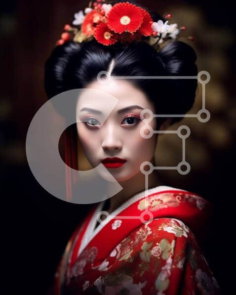 Intra Συλλεκτικό Ξύλινο Παζλ Plywood 4mm – Σοβαρή γυναίκα με ιαπωνικό κιμονό με κόκκινο λουλούδι Σε Ξύλινο Κουτί – Διαστάσεις Puzzle: 10×10 cm – 25 κομμάτια