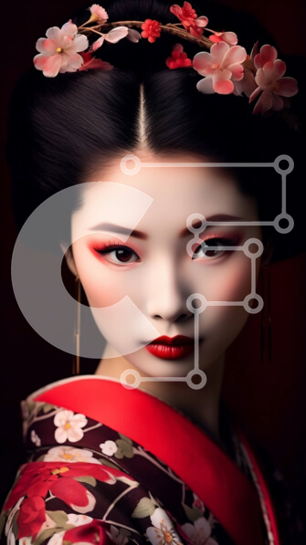 Intra Συλλεκτικό Ξύλινο Παζλ Plywood 4mm – Σοβαρή γυναίκα με παραδοσιακό ιαπωνικό κιμονό με λουλουδάτο μοτίβο Σε Ξύλινο Κουτί – Διαστάσεις Puzzle: 10×10 cm – 25 κομμάτια