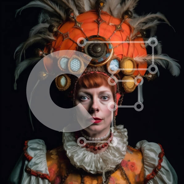 Intra Συλλεκτικό Ξύλινο Παζλ Plywood 4mm – Σοβαρή γυναίκα με περίτεχνα φτερά κεφαλής και κόκκινα μαλλιά Σε Ξύλινο Κουτί – Διαστάσεις Puzzle: 10×10 cm – 25 κομμάτια