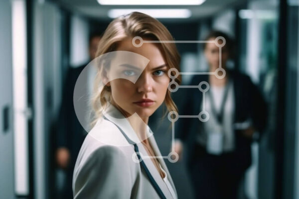Intra Συλλεκτικό Ξύλινο Παζλ Plywood 4mm – Σοβαρή επιχειρηματίας σε ένα διάδρομο με άλλους επαγγελματίες Σε Ξύλινο Κουτί – Διαστάσεις Puzzle: 10×10 cm – 25 κομμάτια