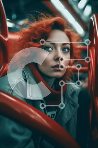 Intra Συλλεκτικό Ξύλινο Παζλ Plywood 4mm – Σοβαρή κοκκινομάλλα γυναίκα με γκρι μπουφάν στον πάγκο του μετρό Σε Ξύλινο Κουτί – Διαστάσεις Puzzle: 10×10 cm – 25 κομμάτια
