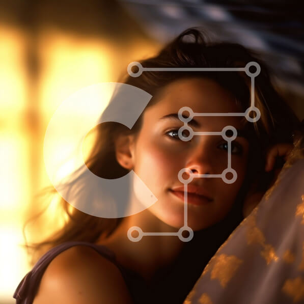 Intra Συλλεκτικό Ξύλινο Παζλ Plywood 4mm – Σοβαρή νεαρή γυναίκα με καστανά μαλλιά και μάτια σε ένα κρεβάτι Σε Ξύλινο Κουτί – Διαστάσεις Puzzle: 10×10 cm – 25 κομμάτια