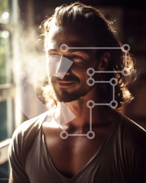 Intra Συλλεκτικό Ξύλινο Παζλ Plywood 4mm – Σοβαρός άνδρας με μακριά μαλλιά και γένια στέκεται μπροστά από το ηλιόλουστο παράθυρο Σε Ξύλινο Κουτί – Διαστάσεις Puzzle: 10×10 cm – 25 κομμάτια