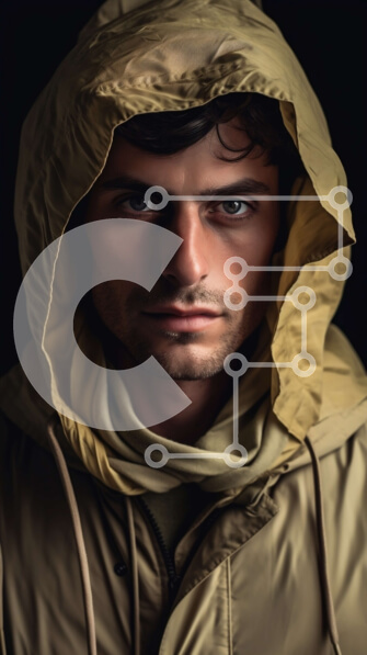 Intra Συλλεκτικό Ξύλινο Παζλ Plywood 4mm – Σοβαρός άνδρας με κίτρινο αδιάβροχο και κουκούλα που κοιτάζει την κάμερα Σε Ξύλινο Κουτί – Διαστάσεις Puzzle: 10×10 cm – 25 κομμάτια