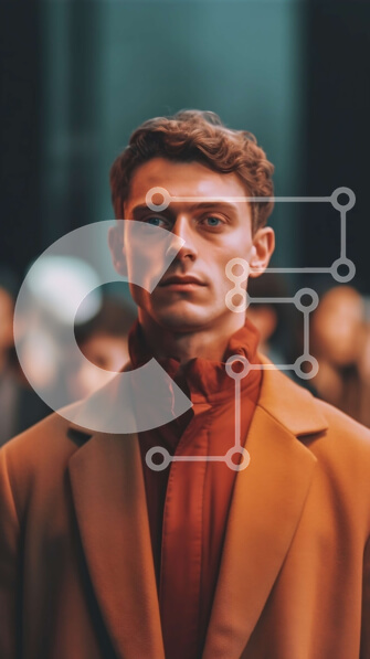 Intra Συλλεκτικό Ξύλινο Παζλ Plywood 4mm – Σοβαρός άνδρας με μαύρισμα παλτό και κόκκινο πουκάμισο που βλέπει στην κάμερα Σε Ξύλινο Κουτί – Διαστάσεις Puzzle: 10×10 cm – 25 κομμάτια