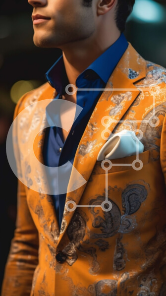 Intra Συλλεκτικό Ξύλινο Παζλ Plywood 4mm – Σοβαρός άνδρας με πορτοκαλί κοστούμι Paisley που κοιτάζει μακριά Σε Ξύλινο Κουτί – Διαστάσεις Puzzle: 10×10 cm – 25 κομμάτια
