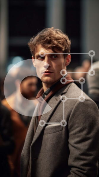 Intra Συλλεκτικό Ξύλινο Παζλ Plywood 4mm – Σοβαρός άνδρας με γκρι κοστούμι και καφέ κασκόλ σε ένα πλήθος Σε Ξύλινο Κουτί – Διαστάσεις Puzzle: 10×10 cm – 25 κομμάτια