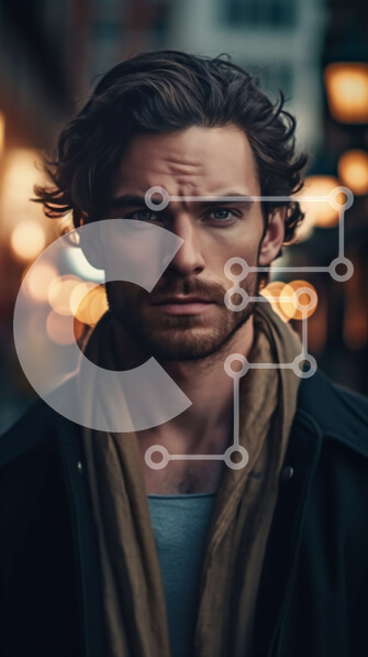 Intra Συλλεκτικό Ξύλινο Παζλ Plywood 4mm – Σοβαρός άνδρας με μαύρο σακάκι και κασκόλ που στέκεται στο δρόμο της πόλης τη νύχτα Σε Ξύλινο Κουτί – Διαστάσεις Puzzle: 10×10 cm – 25 κομμάτια