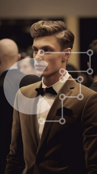 Intra Συλλεκτικό Ξύλινο Παζλ Plywood 4mm – Σοβαρός άνδρας με καφέ κοστούμι και μαύρο παπιγιόν που στέκεται σε ένα πλήθος Σε Ξύλινο Κουτί – Διαστάσεις Puzzle: 10×10 cm – 25 κομμάτια