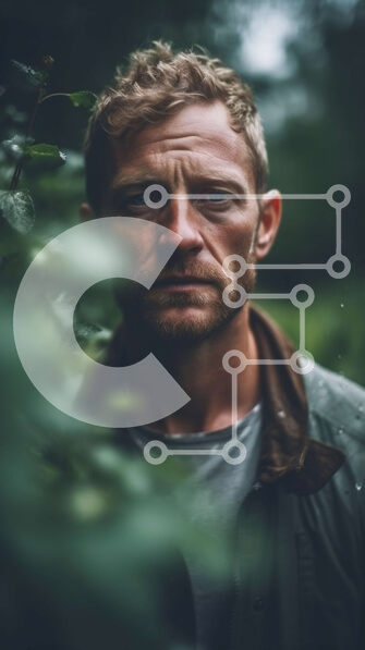 Intra Συλλεκτικό Ξύλινο Παζλ Plywood 4mm – Σοβαρός άνδρας με πράσινο σακάκι που στέκεται στο καταπράσινο δάσος Σε Ξύλινο Κουτί – Διαστάσεις Puzzle: 10×10 cm – 25 κομμάτια