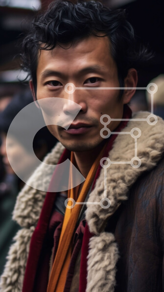 Intra Συλλεκτικό Ξύλινο Παζλ Plywood 4mm – Σοβαρός άνδρας με καφέ σακάκι και κόκκινο φουλάρι στην πολυσύχναστη οδό Σε Ξύλινο Κουτί – Διαστάσεις Puzzle: 10×10 cm – 25 κομμάτια