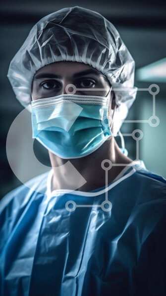 Intra Συλλεκτικό Ξύλινο Παζλ Plywood 4mm – Σοβαρός άνδρας χειρουργός με μπλε χειρουργική τουαλέτα και μάσκα στο χειρουργείο Σε Ξύλινο Κουτί – Διαστάσεις Puzzle: 10×10 cm – 25 κομμάτια