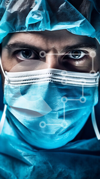 Intra Συλλεκτικό Ξύλινο Παζλ Plywood 4mm – Σοβαρός άνδρας γιατρός με μπλε τρίβει και ιατρική μάσκα Σε Ξύλινο Κουτί – Διαστάσεις Puzzle: 10×10 cm – 25 κομμάτια