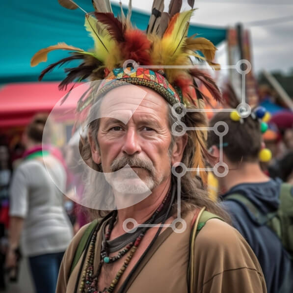 Intra Συλλεκτικό Ξύλινο Παζλ Plywood 4mm – Σοβαρός άνδρας με πολύχρωμη κόμμωση που στέκεται μπροστά σε ένα πλήθος Σε Ξύλινο Κουτί – Διαστάσεις Puzzle: 10×10 cm – 25 κομμάτια