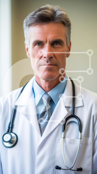Intra Συλλεκτικό Ξύλινο Παζλ Plywood 4mm – Σοβαρός γιατρός με άσπρο εργαστηριακό παλτό και στηθοσκόπιο Σε Ξύλινο Κουτί – Διαστάσεις Puzzle: 10×10 cm – 25 κομμάτια