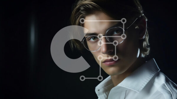 Intra Συλλεκτικό Ξύλινο Παζλ Plywood 4mm – Σοβαρός νεαρός άνδρας με γυαλιά και λευκό πουκάμισο Σε Ξύλινο Κουτί – Διαστάσεις Puzzle: 10×10 cm – 25 κομμάτια