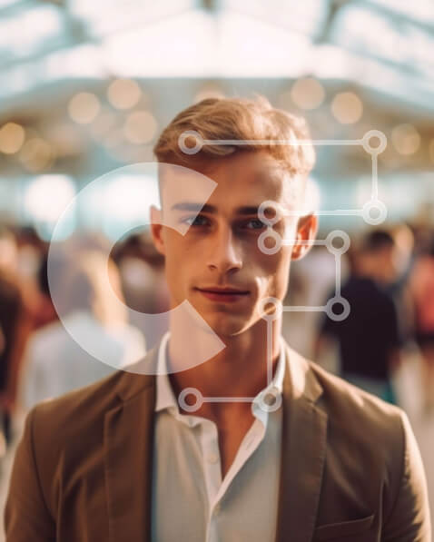 Intra Συλλεκτικό Ξύλινο Παζλ Plywood 4mm – Σοβαρός νεαρός άνδρας με καφέ σακάκι που ξεχωρίζει σε έναν πολυσύχναστο δρόμο Σε Ξύλινο Κουτί – Διαστάσεις Puzzle: 10×10 cm – 25 κομμάτια