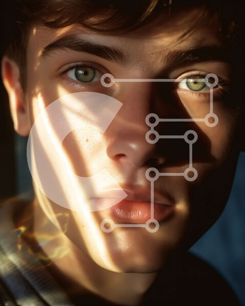 Intra Συλλεκτικό Ξύλινο Παζλ Plywood 4mm – Σοβαρός νεαρός άνδρας με λαμπερά πράσινα μάτια με γκρι πουλόβερ Σε Ξύλινο Κουτί – Διαστάσεις Puzzle: 10×10 cm – 25 κομμάτια