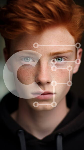 Intra Συλλεκτικό Ξύλινο Παζλ Plywood 4mm – Σοβαρός νεαρός άνδρας με κόκκινα μαλλιά και πράσινα μάτια Σε Ξύλινο Κουτί – Διαστάσεις Puzzle: 10×10 cm – 25 κομμάτια