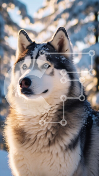 Intra Συλλεκτικό Ξύλινο Παζλ Plywood 4mm – Σοβαρός Σιβηρικός γεροδεμένος σκύλος στο χιόνι Σε Ξύλινο Κουτί – Διαστάσεις: 10×10 cm – 25 κομμάτια