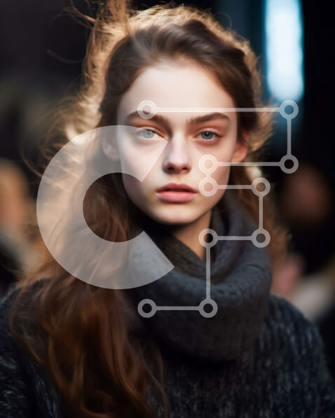 Intra Συλλεκτικό Ξύλινο Παζλ Plywood 4mm – Σοβαρό μοντέλο με μακριά καστανά μαλλιά στην πασαρέλα με μαύρο πουλόβερ και κασκόλ Σε Ξύλινο Κουτί – Διαστάσεις Puzzle: 10×10 cm – 25 κομμάτια