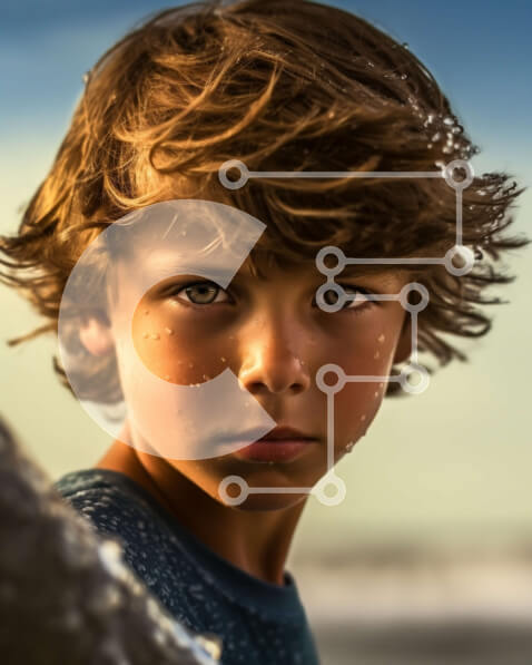 Intra Συλλεκτικό Ξύλινο Παζλ Plywood 4mm – Σοβαρό νεαρό αγόρι που στέκεται στη βραχώδη παραλία με τον ωκεανό στο φόντο Σε Ξύλινο Κουτί – Διαστάσεις Puzzle: 10×10 cm – 25 κομμάτια