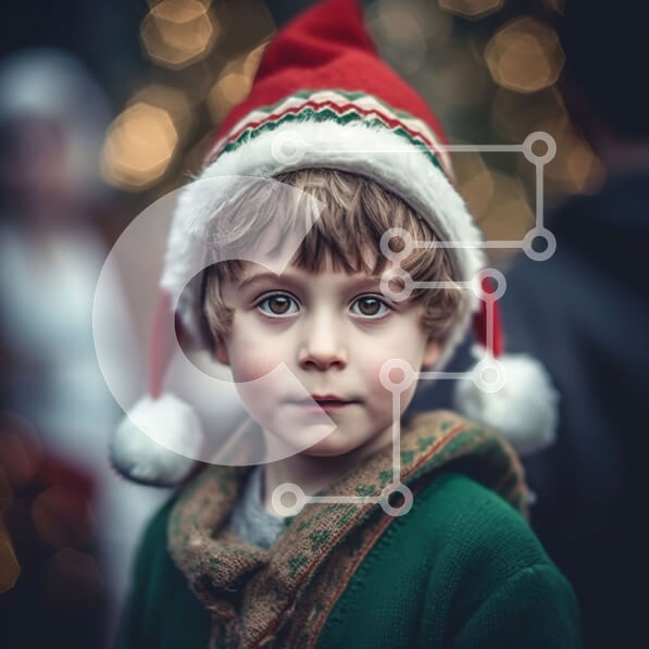 Intra Συλλεκτικό Ξύλινο Παζλ Plywood 4mm – Σοβαρό νεαρό αγόρι με καπέλο Άγιου Βασίλη και πράσινο πουλόβερ Σε Ξύλινο Κουτί – Διαστάσεις: 10×10 cm – 25 κομμάτια