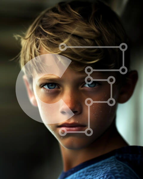 Intra Συλλεκτικό Ξύλινο Παζλ Plywood 4mm – Σοβαρό πορτρέτο νεαρού αγοριού με ξανθά μαλλιά και μπλε μάτια μπροστά από τον τοίχο γκράφιτι Σε Ξύλινο Κουτί – Διαστάσεις Puzzle: 10×10 cm – 25 κομμάτια