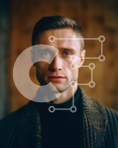 Intra Συλλεκτικό Ξύλινο Παζλ Plywood 4mm – Σοβαρό πορτρέτο ενός άνδρα με καφέ παλτό και μαύρο ζιβάγκο Σε Ξύλινο Κουτί – Διαστάσεις Puzzle: 10×10 cm – 25 κομμάτια