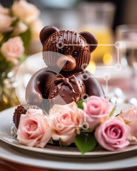 Intra Συλλεκτικό Ξύλινο Παζλ Plywood 4mm – Σοκολατένιο αρκουδάκι σε διακοσμημένο πιάτο με ροζ τριαντάφυλλα Σε Ξύλινο Κουτί – Διαστάσεις: 10×10 cm – 25 κομμάτια