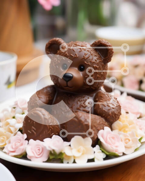 Intra Συλλεκτικό Ξύλινο Παζλ Plywood 4mm – Σοκολατένιο αρκουδάκι στο τραπέζι με λουλούδια και φλιτζάνια Σε Ξύλινο Κουτί – Διαστάσεις: 10×10 cm – 25 κομμάτια