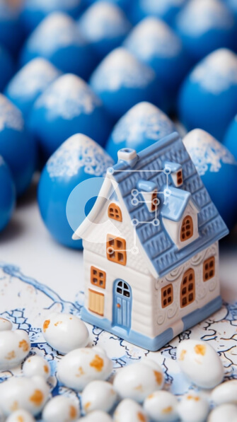 Intra Συλλεκτικό Ξύλινο Παζλ Plywood 4mm – Σπίτι παιχνιδιών σε μπλε και άσπρα ζελέ Σε Ξύλινο Κουτί – Διαστάσεις: 10×10 cm – 25 κομμάτια