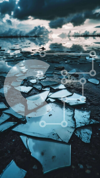 Intra Συλλεκτικό Ξύλινο Παζλ Plywood 4mm – Σπασμένα γυάλινα θραύσματα μπροστά από ένα υδάτινο σώμα με θυελλώδη σύννεφα Σε Ξύλινο Κουτί – Διαστάσεις: 10×10 cm – 25 κομμάτια