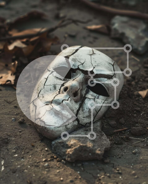 Intra Συλλεκτικό Ξύλινο Παζλ Plywood 4mm – Σπασμένη μάσκα στο έδαφος με βράχους και φύλλα Σε Ξύλινο Κουτί – Διαστάσεις Puzzle: 10×10 cm – 25 κομμάτια