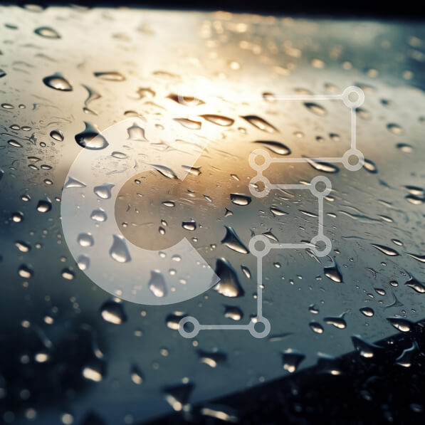 Intra Συλλεκτικό Ξύλινο Παζλ Plywood 4mm – Σταγόνες βροχής σε ένα τζάμι με αντανακλάσεις ηλιοβασιλέματος Σε Ξύλινο Κουτί – Διαστάσεις Puzzle: 10×10 cm – 25 κομμάτια