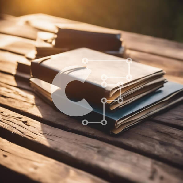 Intra Συλλεκτικό Ξύλινο Παζλ Plywood 4mm – Στοίβα από βιβλία στο ξύλινο τραπέζι με το ηλιοβασίλεμα Σε Ξύλινο Κουτί – Διαστάσεις Puzzle: 10×10 cm – 25 κομμάτια