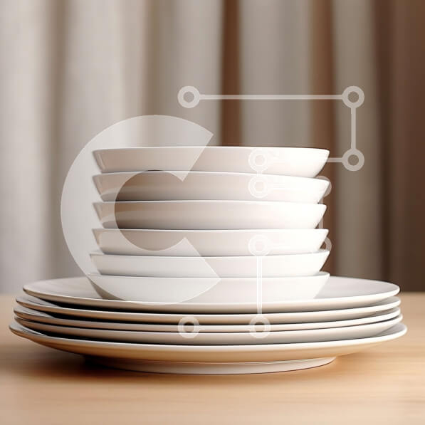 Intra Συλλεκτικό Ξύλινο Παζλ Plywood 4mm – Στοίβα από λευκά πιάτα σε ένα ξύλινο τραπέζι Σε Ξύλινο Κουτί – Διαστάσεις: 10×10 cm – 25 κομμάτια