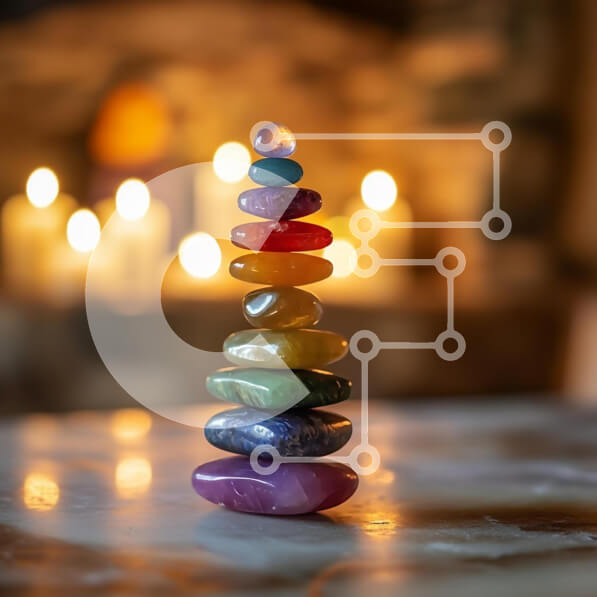 Intra Συλλεκτικό Ξύλινο Παζλ Plywood 4mm – Στοίβα από πολύχρωμες πέτρες με φόντο το φως των κεριών Σε Ξύλινο Κουτί – Διαστάσεις: 10×10 cm – 25 κομμάτια