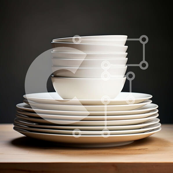 Intra Συλλεκτικό Ξύλινο Παζλ Plywood 4mm – Στοίβα από λευκά πιάτα και μπολ σε ξύλινο τραπέζι Σε Ξύλινο Κουτί – Διαστάσεις Puzzle: 10×10 cm – 25 κομμάτια