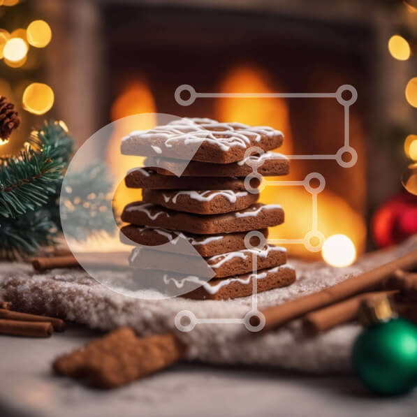 Intra Συλλεκτικό Ξύλινο Παζλ Plywood 4mm – Στοίβα από μπισκότα μελόψωμο και χριστουγεννιάτικα στολίδια δίπλα στο τζάκι Σε Ξύλινο Κουτί – Διαστάσεις: 10×10 cm – 25 κομμάτια