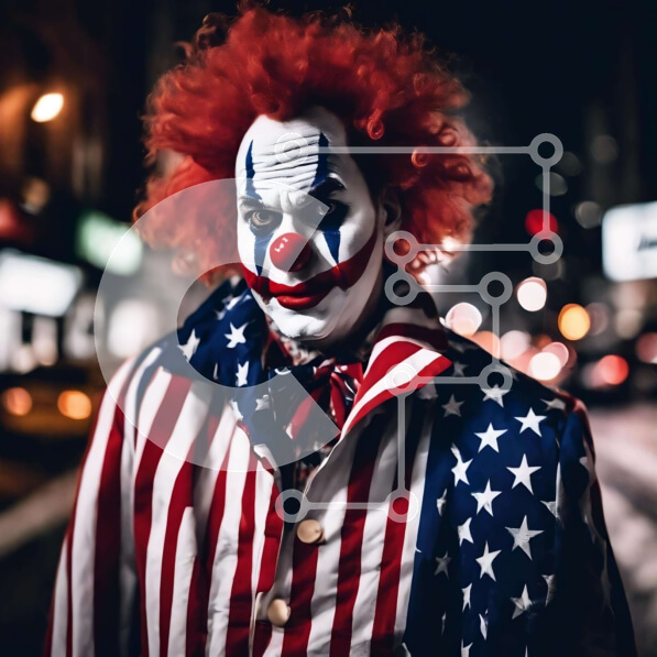 Intra Συλλεκτικό Ξύλινο Παζλ Plywood 4mm – Στολή κλόουν με αμερικανική σημαία για διακοπές και εκδηλώσεις Σε Ξύλινο Κουτί – Διαστάσεις: 10×10 cm – 25 κομμάτια